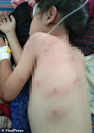 Người dân xung quanh nghe thấy tiếng kêu thất thanh đầy đau đớn của Riem nhưng khi họ tới nơi bé gái 6 tuổi đã bất tỉnh. Một bức ảnh cho thấy hàng chục vết đốt trên cơ thể bé gái.