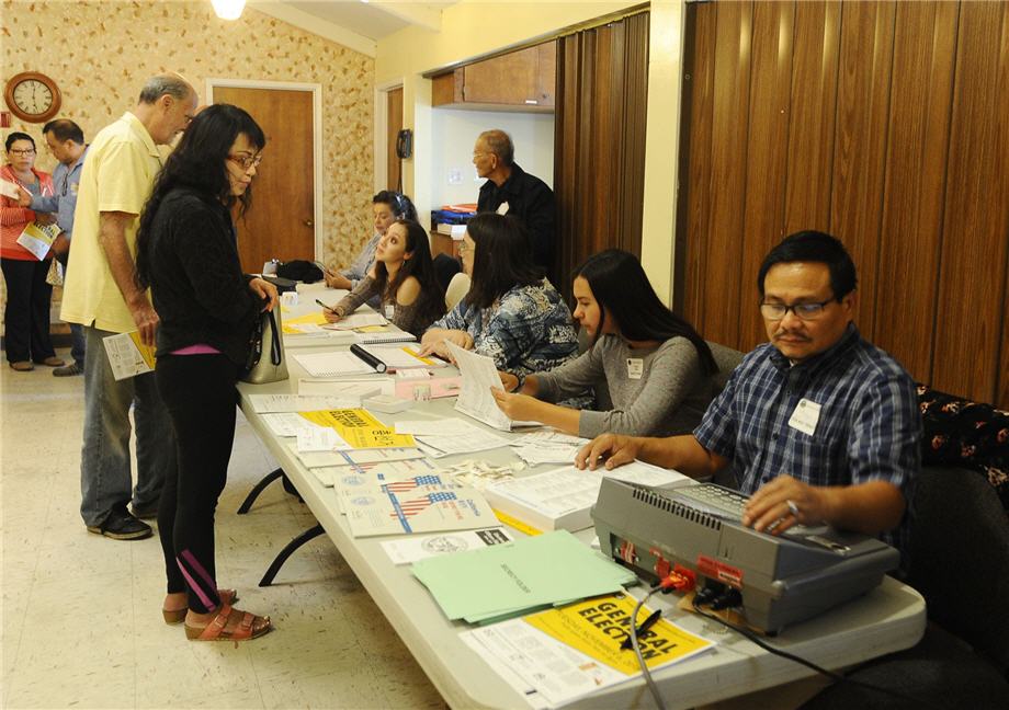 Cử tri gốc Việt đi bỏ phiếu tại một điểm bầu cử ở thành phố Westminster hôm Thứ Ba, 6 Tháng Mười Một, 2018. (Hình: Dân Huỳnh/Người Việt)