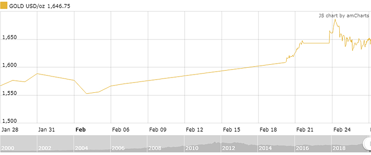 Hiện tại, mỗi ounce giao dịch tại 1.646 USD. Giá vàng gần đây luôn quanh đỉnh 7 năm, do số ca nhiễm virus corona mới trên thế giới ngày càng tăng, đe dọa các hoạt động kinh tế toàn cầu.