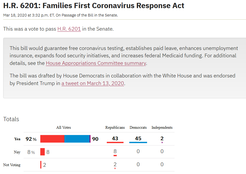 The bill was drafted by House Democrats in collaboration with the White House and was endorsed by President Trump in a tweet on March 13, 2020.