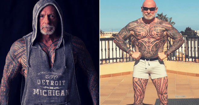 Lực sĩ nghiệp dư 63 tuổi chịu đau để xăm toàn cơ thể