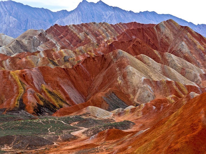 3. Công viên địa chất Trương Dịch Đan Hà, Trung Quốc: Nước ngầm bị kết tủa tạo nên các mỏ khoáng chất nhiều màu sắc trên dãy núi. Nơi đây được công nhận là di sản thế giới của UNESCO vào năm 2009.