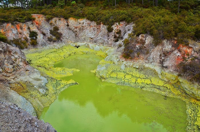 8. Devil's Bath, New Zealand: Hồ địa nhiệt này có màu xanh nhạt đặc biệt, được tạo ra bởi chất lưu huỳnh.