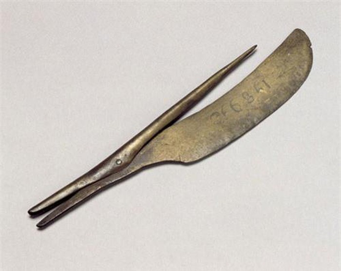 2. Kẹp uốn tóc (năm575 - năm1194 SCN): Đây là một công cụ tạo kiểu tóc - một biểu tượng đẳng cấp của người Ai Cập cổ đại. Họ đã sử dụng công cụ bằng đồng giống vũ khí như thế này để uốn và cắt tóc.