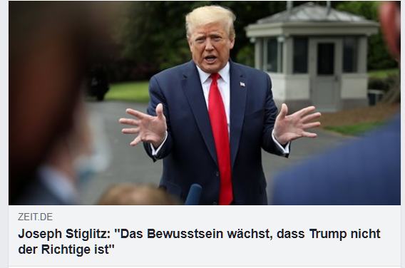Vẫn còn có hy vọng cho nước Mỹ, Joseph Stiglitz, giáo sư đại học Columbia, khôi nguyên giải Nobel kinh tế (2001) cho biết. Bởi vì cuộc khủng hoảng Corona có thể khiến Donald Trump mất chức. Sau đó con đường cải cách sẽ rộng mở.