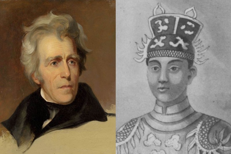 Tổng thống Mỹ Andrew Jackson (bên trái) và vua Minh Mệnh (bên phải). Ảnh tư liệu.