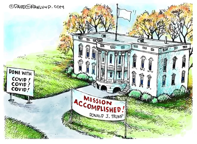 Hãy tưởng tượng nếu bất kỳ ứng cử viên tổng thống nào khác, giữa một đại dịch chết người, tổ chức các cuộc biểu tình tuyên truyền không tin về giản cách xã hội và các hướng dẫn đeo mặt nạ, chọc những ai đeo mặc nạ, biến chúng thành các sự kiện có khả năng lan rộng hơn cho dịch bệnh. Và hãy tưởng tượng nếu ứng cử viên đó quảng cáo những phương pháp chữa trị vô giá trị, cáo buộc các chuyên gia y tế tuyến đầu trục lợi, gạt các nhà khoa học sang một bên và đe dọa sa thải cơ quan hàng đầu của quốc gia về các bệnh truyền nhiễm. Thì ứng cử viên đó sẽ ra sao? Câu trả lời là: người ủng hộ Trump vẫn lờ đi và đối với họ chúng hoàn toàn không rắc rối gì.