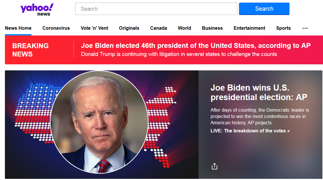 Theo CNN, Joe Biden sẽ trở thành tổng thống thứ 46 của Hoa Kỳ, sau chiến thắng ở bang nơi ông sinh ra đã đưa ông vượt qua 270 phiếu đại cử tri cần thiết để giành chiến thắng.