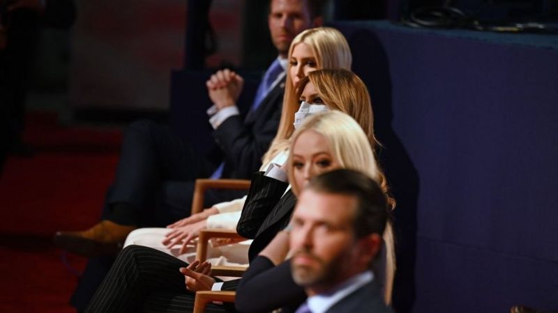 Eric Trump, Ivanka Trump, US First Lady Melania Trump, Tiffany Trump and Donald Trump Jr are seen ahead of the first presidential debate