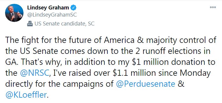 Thượng Nghị Sĩ Lindsey Graham quyên 1 triệu USD tái kiểm phiếu ở Georgia