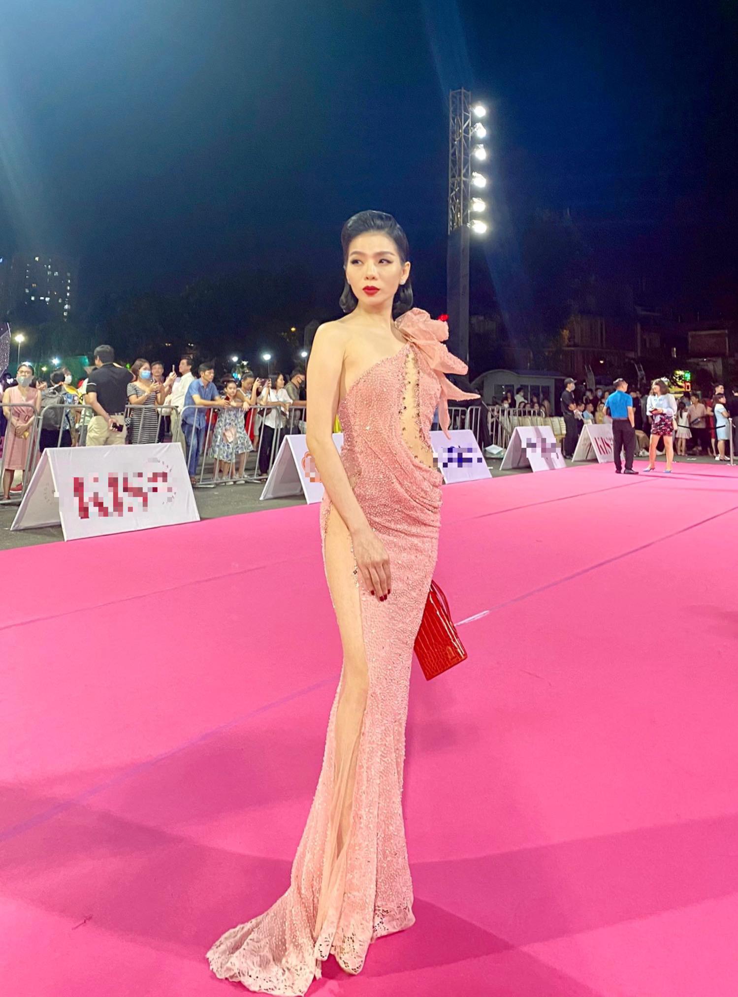 Xuất hiện trên thảm đỏ Chung kết Hoa hậu Việt Nam 2020, Lệ Quyên diện bộ váy xuyên thấu quyến rũ. Đường xẻ đùi cao tít với điểm nhấn thiết kế khoét ngực phối ren táo bạo giúp nữ ca sĩ khoe khéo vẻ đẹp không thua kém dàn mỹ nhân tham gia cuộc thi sắc đẹp uy tín.