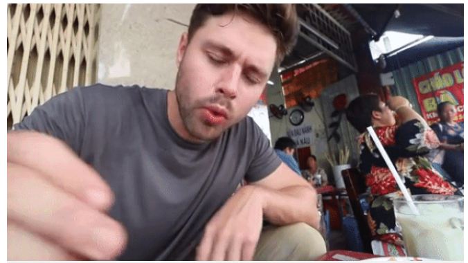 Old  Default Vẻ mặt của chàng trai tây ăn cháo lòng bình dân của Việt Nam