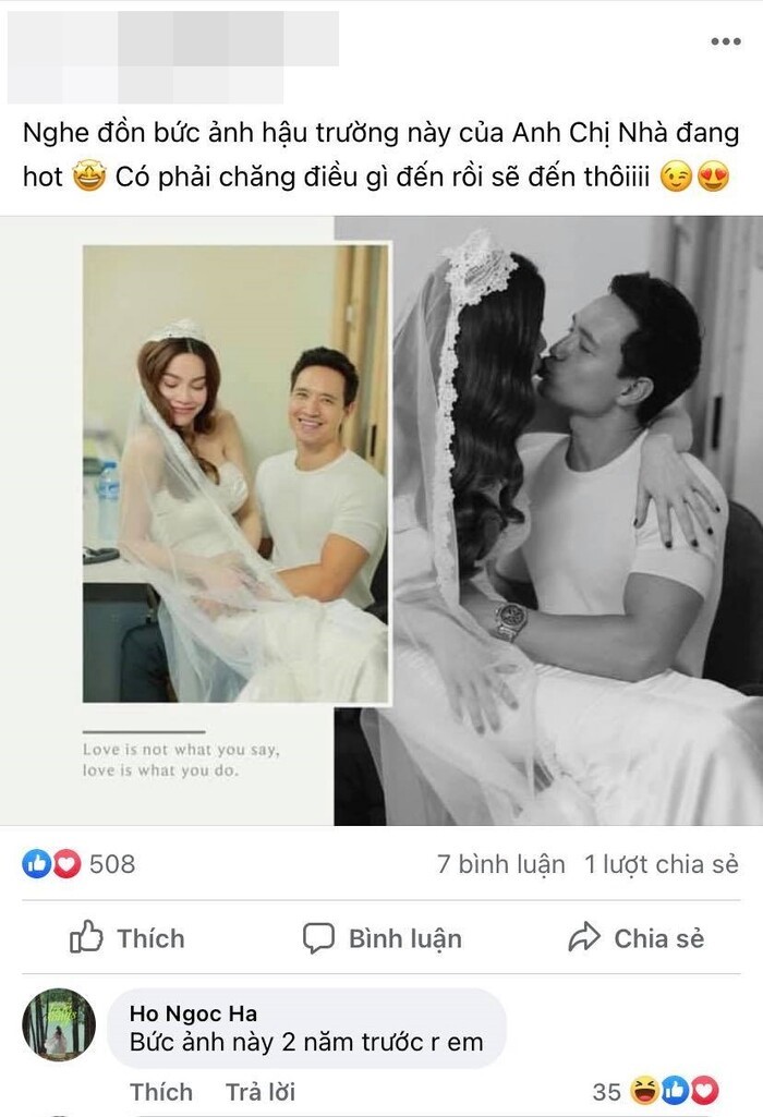 Như vậy, Hồ Ngọc Hà đã xác nhận rằng những hình ảnh này đã được chụp vào 2 năm trước, thời điểm cô và Kim Lý đang là cặp đôi rất được khán giả quan tâm sau MV Cả một trời thương nhớ. Tuy nhiên, vẫn chưa biết rõ được mục đích Hà Hồ và Kim Lý chụp bộ ảnh cưới này để phục vụ cho việc gì nhưng không quá khó khăn để nhận ra sự hạnh phúc của cả 2.