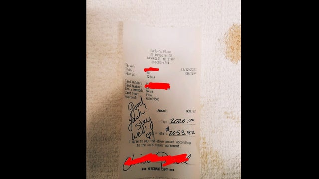 Nhân viên phục vụ của Maryland được tiền 'TIP' $2K trước khi nhà hàng bị đóng cửa vì COVID-19