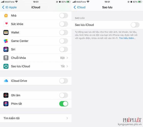 Cách sao lưu dữ liệu lên iCloud. Ảnh: MINH HOÀNG 2. Tắt Bluetooth