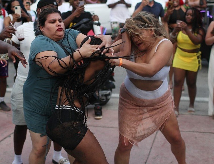 Du khách ẩu đả tại Miami Beach. Ảnh: Reuters.