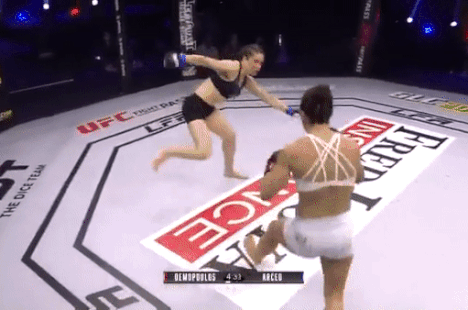 Không dừng tay, Vanessa Demopoulos thực hiện cú lên gối trúng đầu đối thủ, sau đó là hàng loạt cú đấm liên hoàn. Chứng kiến sự phòng ngự bất lực của Cynthia Arceo, trọng tài đã quyết định cho trận đấu kết thúc sớm chỉ sau 37 giây và Vanessa Demopoulos đã có được chiến thắng knock out hết sức ấn tượng.
