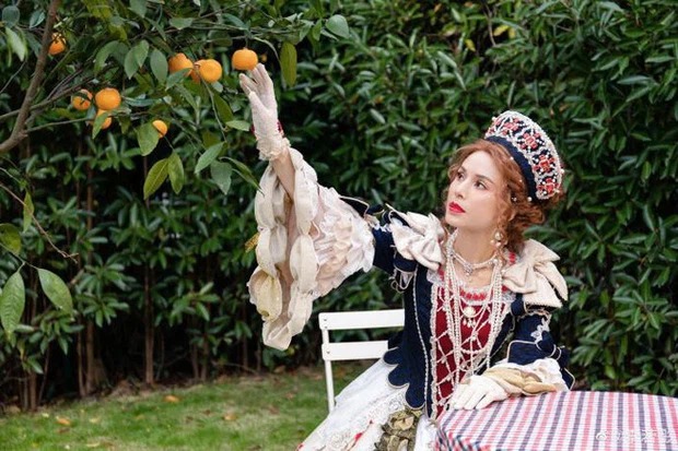 Trong bộ ảnh mới, Lư Nhược Đồng hóa thân vào nữ quư tộc phương Tây thời xưa, với kiểu trang phục cầu kỳ, diêm dúa giống như bước ra từ cổ tích.