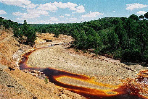 Do có nồng độ pH thấp, tính kim loại nặng, dòng sông Rio Tinto được cho là hệ thống sông ngòi bị ô nhiễm nặng nhất trên thế giới. Con sông này đã từng có vai trò lớn trong lịch sử vì đây chính là cái nôi khai sinh ra thời kỳ đồ Đồng. Ban đầu người ta cứ nghĩ rằng nồng độ pH thấp là do khai thác mỏ đồng, nhưng sau đó người ta phát hiện ra rằng độ pH thấp là kết quả của hoạt động sinh sôi nảy nở của cộng đồng vi khuẩn tự dưỡng và hiếm khí mà không có bàn tay con người tác động vào.