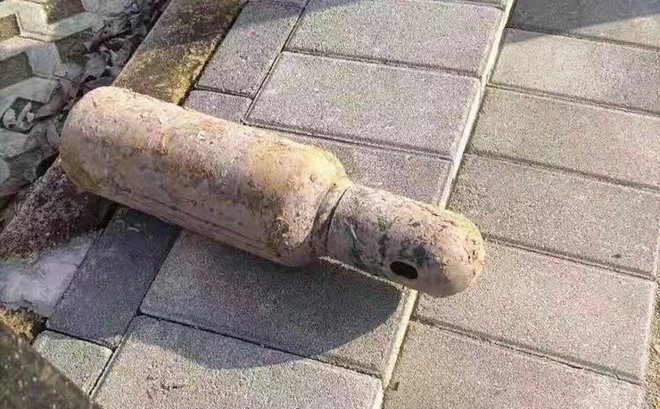 Sau khi nhanh chóng đến hiện trường, cảnh sát đã tìm thấy một vật thể hình trụ bị bùn đất bám đầy bên ngoài.