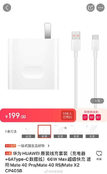 Củ sạc bị cắt giảm được Huawei bán với giá 199 nhân dân tệ (700 ngh́n đồng).