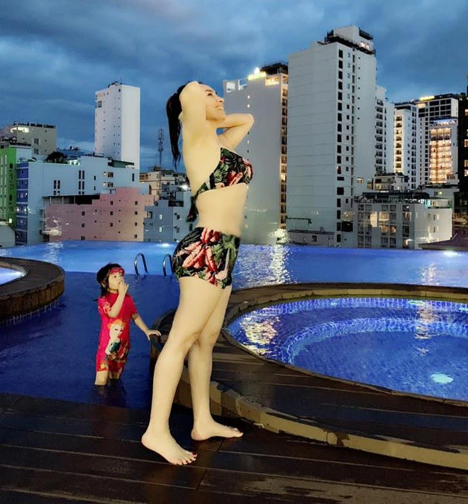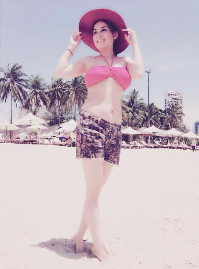 Một vài lần đi du lịch, cô tự tin mặc trang phục áo tắm.