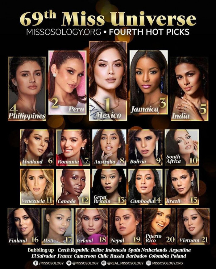 Bảng dự đoán kết quả Miss Universe của chuyên trang sắc đẹp Missosology hồi tháng 12/2020