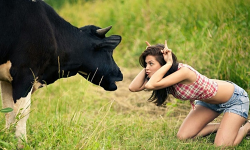 Bên vệ đường cô nhìn thấy một con thú đang gặm cỏ không có sừng, nên hỏi một anh nông dân đứng gần đó: