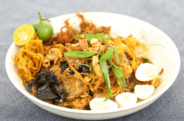 Cho thêm trứng cút, khô bò xé sợi hay khô mực xé nhỏ, tép rang, món mỡ hành tùy theo sở thích của bạn. Nếu mà thích bạn có thể dùng kèm với bánh phồng tôm cũng được nhé.