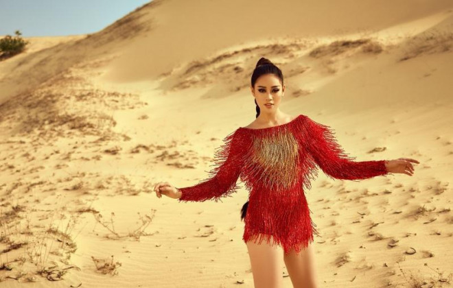 Để kỷ niệm sự kiện ý nghĩa này, Khánh Vân công bố bộ ảnh đặc biệt, được thực hiện trên đồi cát Phan Thiết những ngày đầu tháng 4 trước khi lên đường sang Mỹ. Trong trang phục đầm tua rua màu sắc rực rỡ, Khánh Vân nổi bật giữa đồi cát, hòa quyện với khung cảnh tạo nên một bố cục hài hòa.