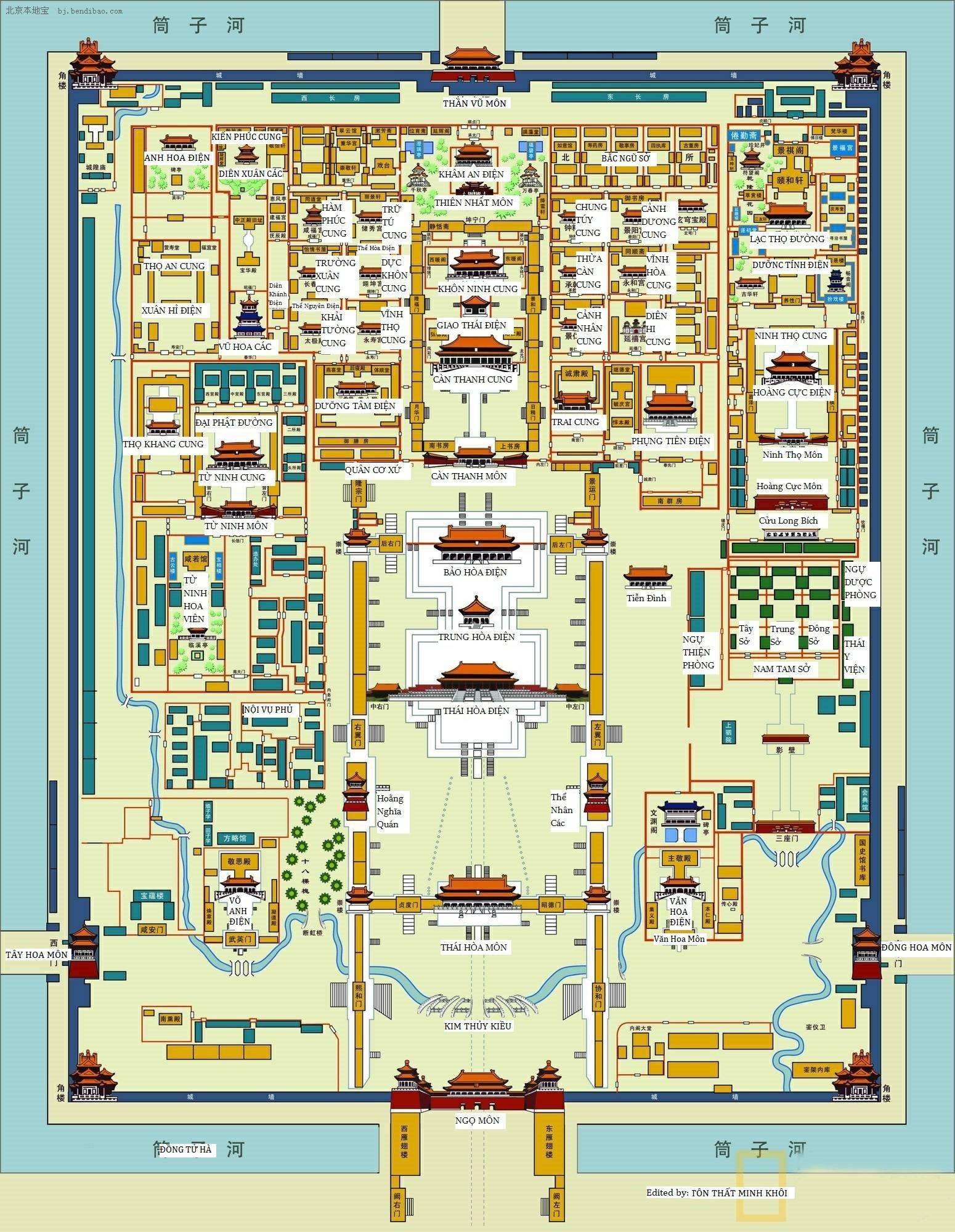 Sơ đồ Tử Cấm Thành với hơn 9.000 căn phòng. Ảnh: Tôn Thất Minh Khôi