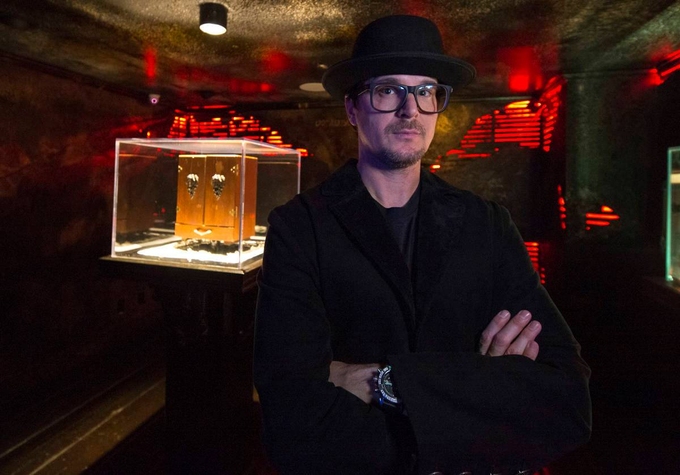 Zak Bagans chụp ảnh cùng chiếc hộp Dybbuk, một hiện vật ma ám theo thần thoại Do Thái. Ảnh: Las Vegas Review-Journal