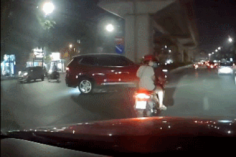 Sự việc xảy ra trên đường Nguyễn Trãi (quận Thanh Xuân, Hà Nội) và được camera hành trình của một xe ô tô khác ghi lại. Theo đó, chiếc xe máy do một thanh niên điều khiển, chở theo 2 người khác, khi đến đoạn đường giao nhau, gặp xe ô tô đang quay đầu, đã không kịp lách ra để tránh, dẫn đến vụ va chạm.