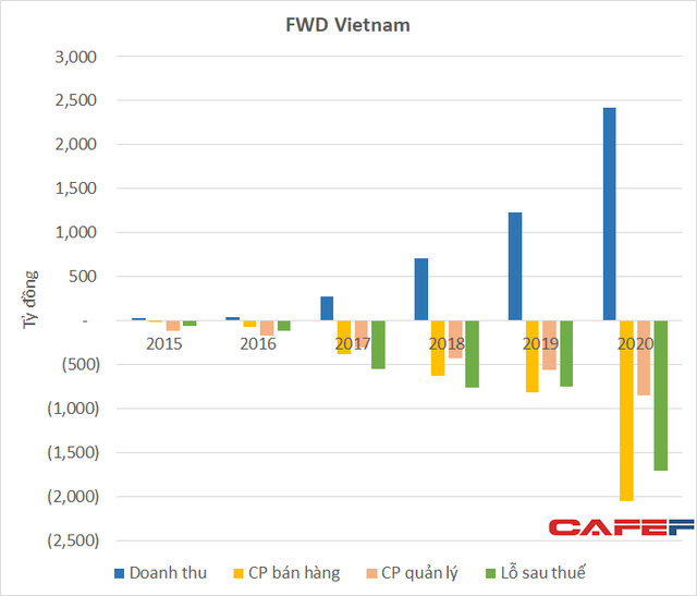 Đi cùng với sự tăng trưởng, mức thua lỗ của FWD ngày càng lớn. Năm ngoái công ty bảo hiểm Hong Kong lỗ ròng hơn 1.700 tỷ đồng, gấp 2,25 lần năm trước đó.