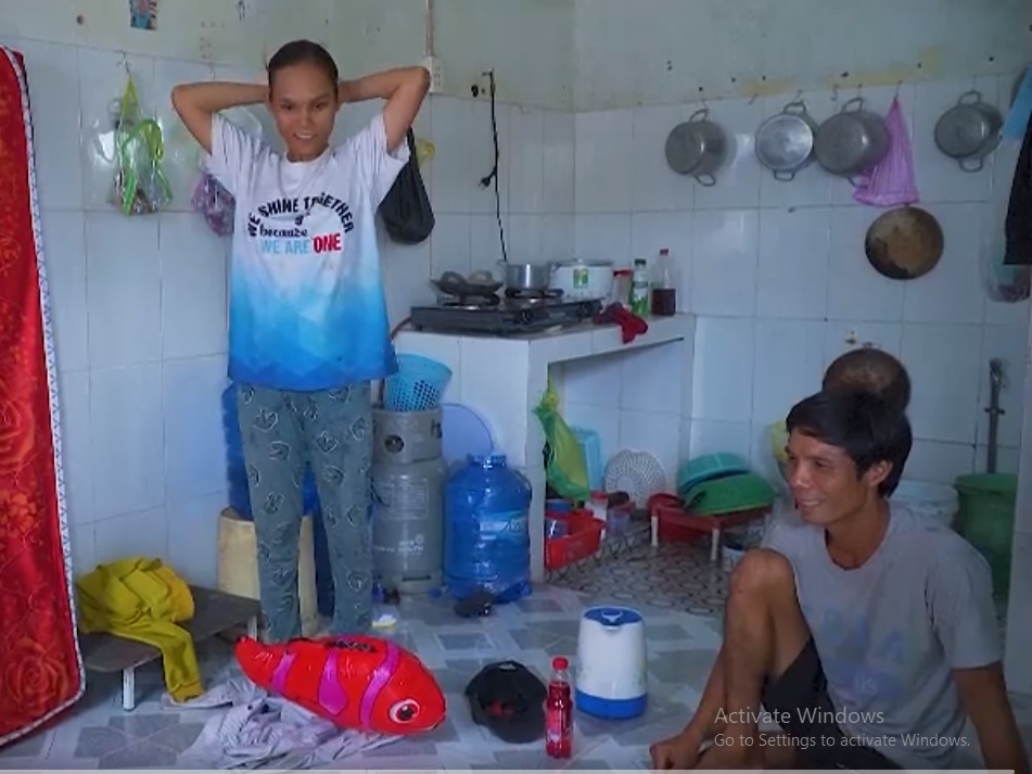 Căn pḥng trọ nhỏ hẹp là nơi sinh sống của cặp vợ chồng và đứa con nhỏ - Ảnh cắt từ clip