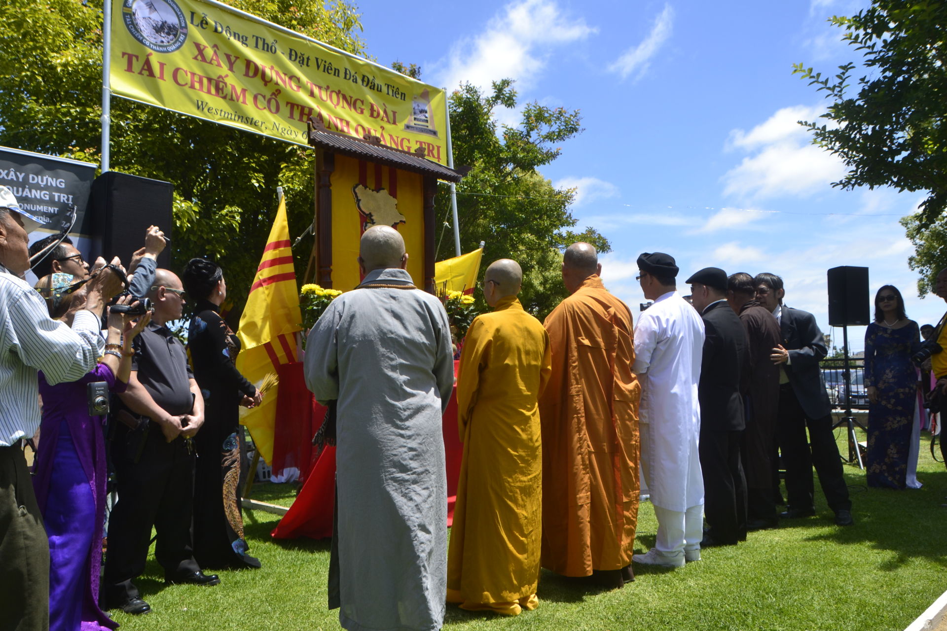 Trước khi buổi lễ bắt đầu, Thị Trưởng Trí Tạ của Westminster đưa các quan khách và lãnh đạo tôn giáo địa phương đi viếng thăm các tượng đài trong Công Viên Tự Do để tưởng nhớ các tử sĩ, nhấn mạnh sự quan trọng của việc xây dựng Tượng Đài Tái Chiếm Cổ Thành Quảng Trị.