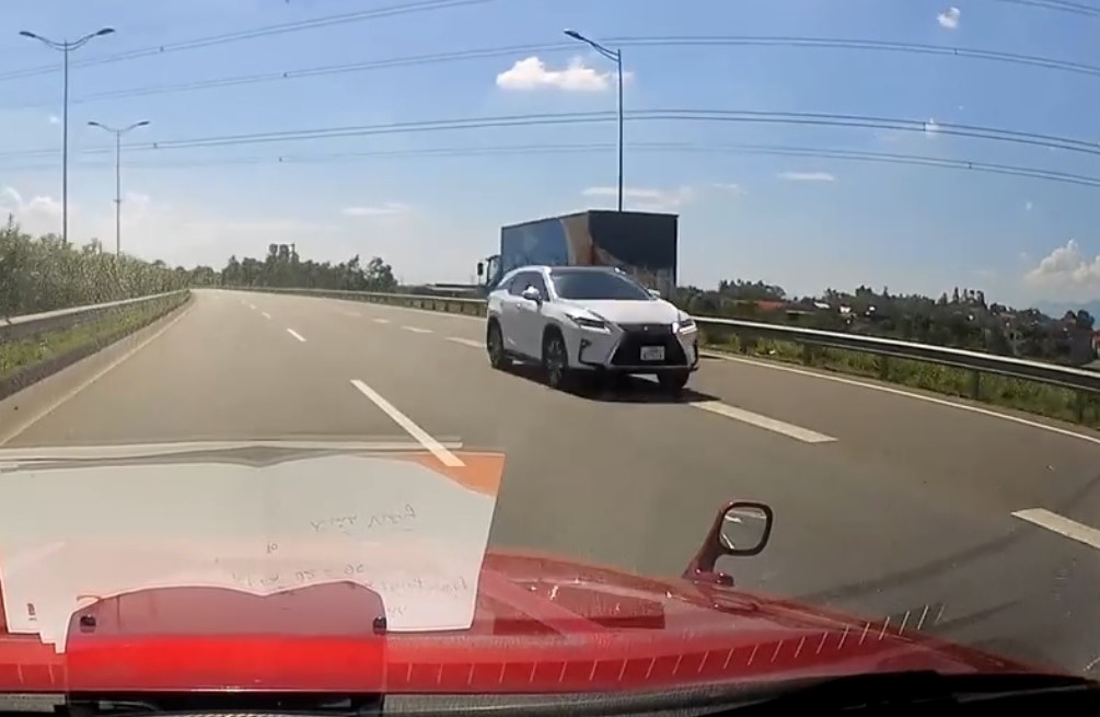 Theo hình ảnh trích xuất từ camera hành trình gắn trên ô tô, thời điểm nói trên, chiếc ô tô này đang di chuyển trên cao tốc Nội Bài – Lào Cai, gần khu vực ngã rẽ Vĩnh Yên, Tam Đảo. Lúc này, tài xế một phen “hú vía” khi phát hiện phía trước xuất hiện một ô tô con hiệu Lexus màu trắng đang di chuyển ngược chiều.