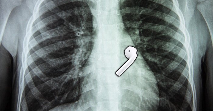 Đúng như vậy. Hình ảnh chụp X-quang cho thấy chiếc AirPod đã ở trong thực quản của anh. Rất may, AirPod đã không làm tắc đường ống thở hoặc ở trong dạy dày (pin lithium-ion không tốt cho sức khỏe). Sau đó, anh được các bác sĩ tiến hành lấy chiếc AirPod ra khỏi cơ thể.