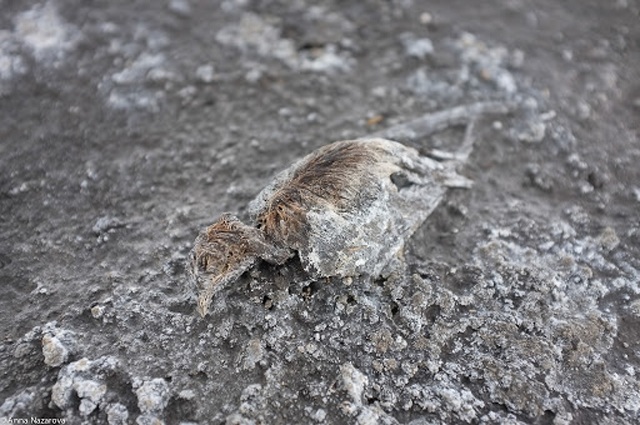 Xác những con vật không may sảy chân ngã xuống hồ đều bị phủ một lớp muối đặc biệt.