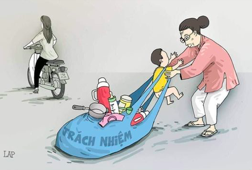 Công nhận rằng cũng có rất nhiều gia đình, ông bà (đặc biệt là bà) không có việc làm, phải sống bám vào con cái và tự nhiên xem việc giữ cháu là một cách trả công. Mệt cũng không dám kêu. Những hoàn cảnh ấy vô phương cứu chữa. Nhưng cũng có rất nhiều ông bà có nhà cửa, có thu nhập hẳn hoi, thậm chí còn đưa tiền thêm cho vợ chồng chúng nó, thế mà vẫn “nai lưng” ra giữ cháu do bị chúng nó “bỏ bom”. Không dám kêu, không dám phản kháng vì đã trót “khoe” và trót “tự hào”, suy cho đến cùng, hiện tượng giữ cháu, lấy cháu làm niềm vui là gì?