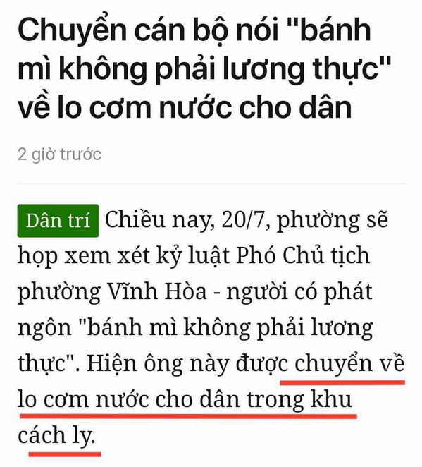 Phó chủ tịch một phường Nha Trang, Khánh Hòa đã phạt một thanh niên đi mua bánh mỳ vì lý do bánh mỳ không phải hàng thiết yếu lương thực. Theo người dân Khánh Hòa, vị phó chủ tịch phường là một "đại gia" không tầm thường, giàu nứt đố đổ vách.