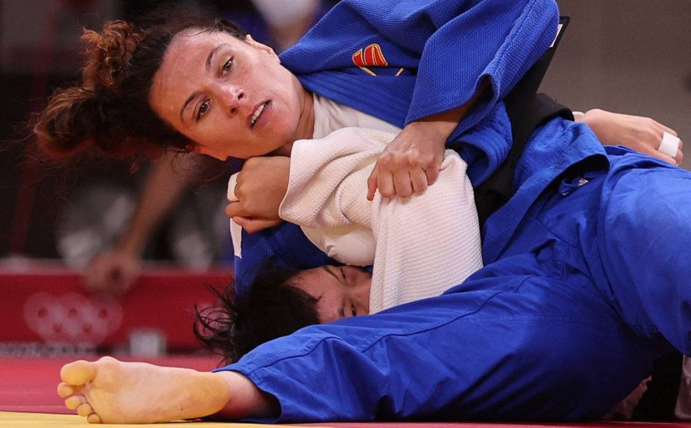 Olympic Tokyo: Thanh Thủy (áo trắng) bị cựu vô địch châu Âu Andreea Chitu hạ chóng vánh ở hạng cân 52kg nữ môn Judo.
