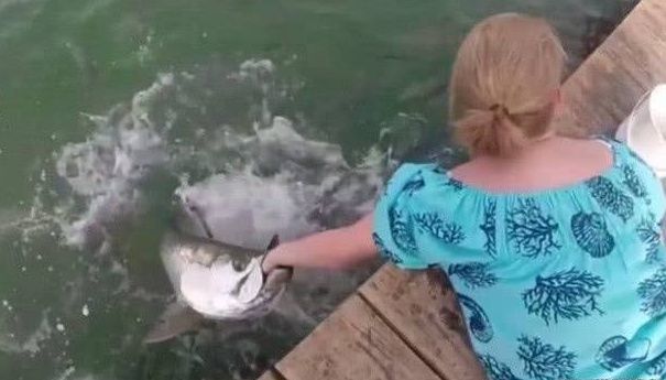 Người phụ nữ này vốn có sở thích cho cá ăn. Trong một lần đi sở thú, cô đã thả những con cá nhỏ xuống hồ nước để làm thức ăn cho những con cá lớn.