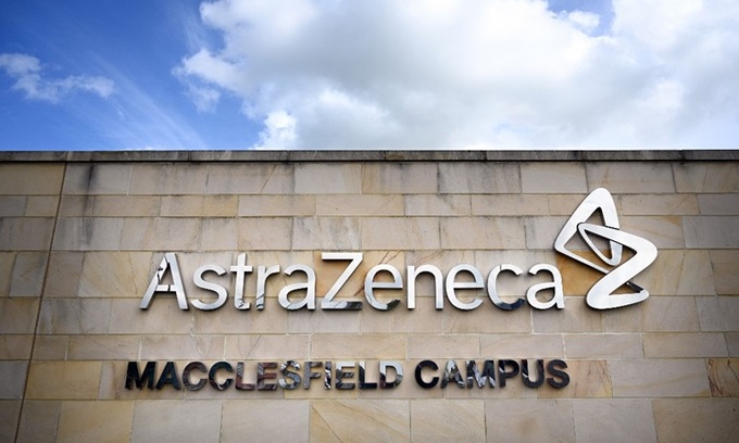 Logo bên ngoài văn pḥng của công ty dược phẩm AstraZeneca ở Macclesfield, miền trung nước Anh hồi tháng 5. Ảnh: AFP.