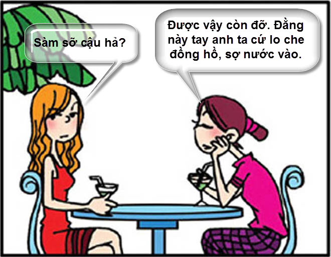 – Tay anh ta cứ lo che mặt đồng hồ, sợ nước vào.