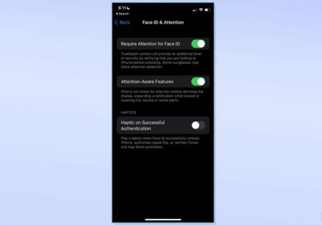 Trên các iPhone từ đời iPhone X, Face ID không chỉ được dùng cho mục đích bảo mật. Hệ thống liên tục hoạt động để nhận biết liệu bạn có đang nhìn vào màn hình không. Khi bạn không nhìn vào máy, iPhone tự động giảm độ sáng. Nếu bạn chỉnh độ sáng bằng tay mà vẫn thấy hiện tượng này xảy ra, bạn sẽ muốn tắt chức năng Attention Aware của Face ID trong mục Settings > Accessibility > Face ID & Attention.