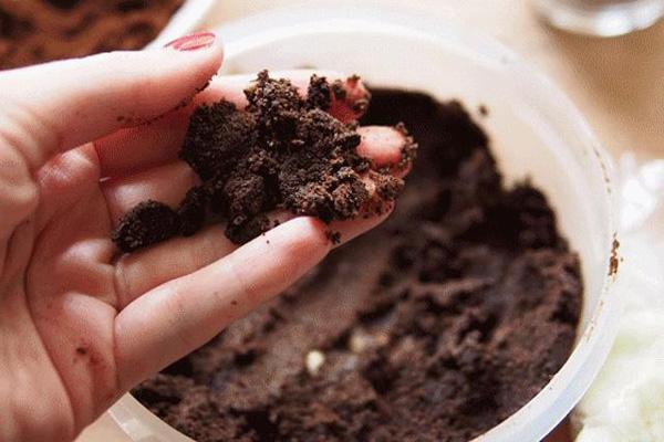 Đổ bã cà phê vào 1/2 thùng hoặc chai, thêm một chút nước cho đủ ấm. Tránh tưới quá nhiều gây đọng nước.