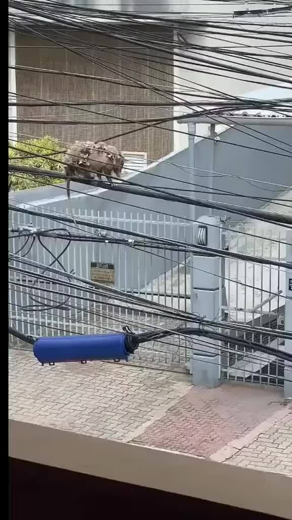 Chuột mẹ cõng đàn con đi trên dây điện. Mẹ con nhà chuột túi opossum đã cho thế giới loài người một phen mở mang tầm mắt.