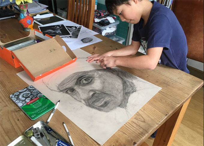 Trong mùa hè vừa qua, Lucas Greenfield (9 tuổi, ở hạt Dorset), đã theo học khóa trực tuyến trau dồi kỹ năng vẽ tại Học viện Nghệ thuật Hoàng gia Anh và làm cho các giáo viên ở đây phải trầm trồ vì những tác phẩm của cậu bé. Bức chân dung về một người đàn ông vô gia cư của Lucas gân ấn tượng mạnh, được coi là tác phẩm đẹp nhất trong số các hoạ sĩ trẻ tham gia khóa học mùa hè.