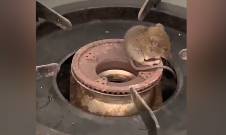 Lần đầu mới thấy chuột ngủ kiểu này. Chú chuột đáng yêu. Ngủ trên bếp nè. 'Đúng là nằm ngủ quên bên Thần chết, chủ nhà mà bật bếp phát th́ có thịt ăn ngay', một người xem video hài hước.